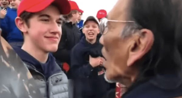 Look, the highschooler might be racist, the kids might be the worst humans to ever exist, I don’t know. But the video in question is a kid staring at a Native American, with no fight occurring. And every comment is speculation. It would be like a video of a bar fight, where people just stared at each other. But we as society decided that this native American represents all Native Americans and this stupid kid represents all kids.